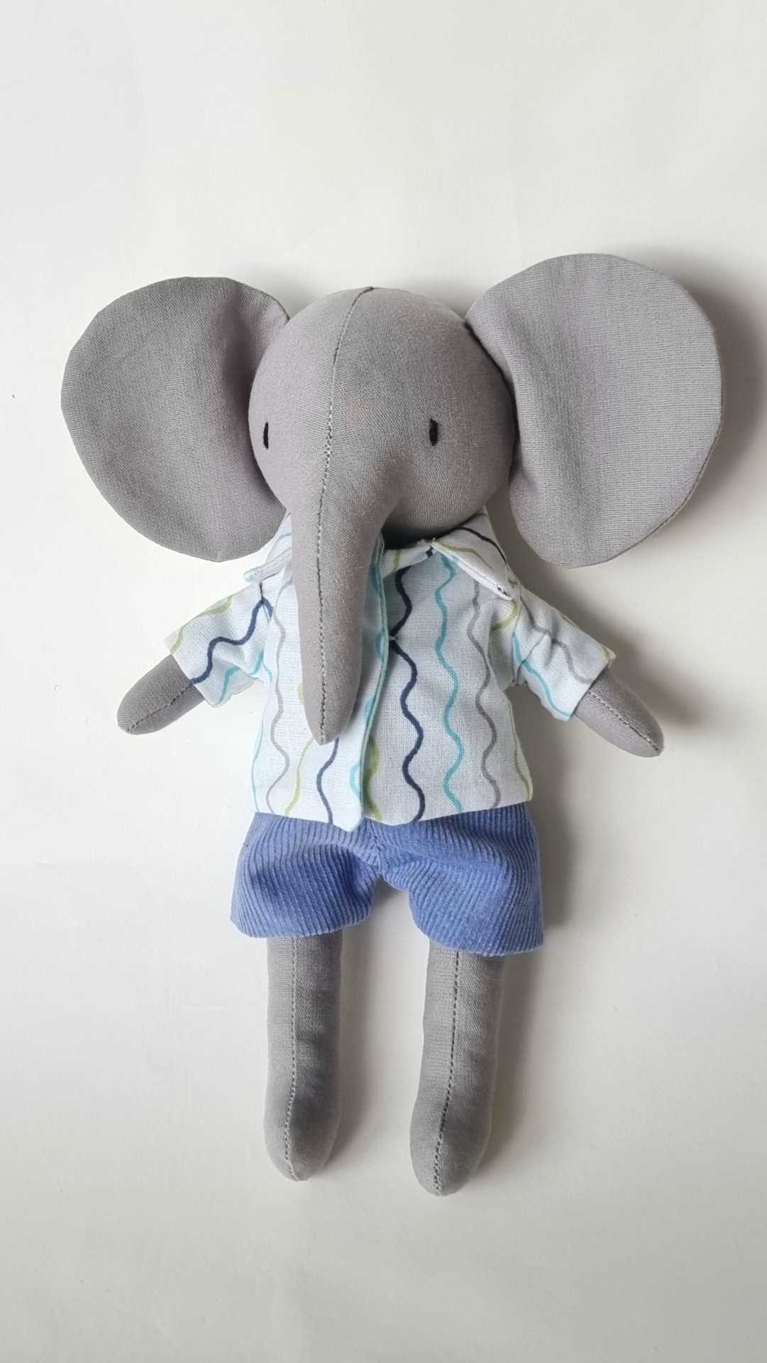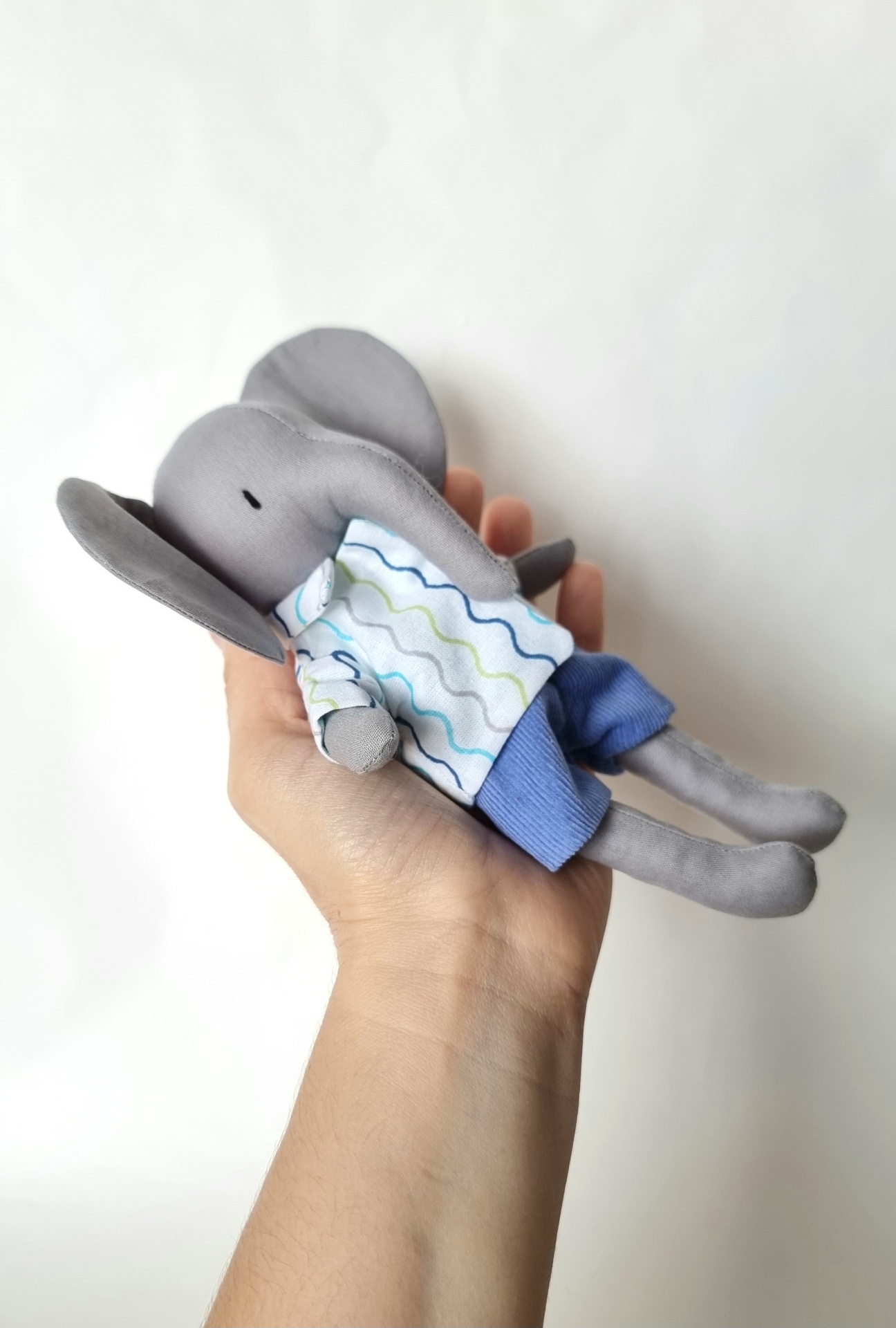 Mini Elefante 45,00 € Desconto de %. Partilhar Comprar Contactar Boneco decorativo feito à mão, com tempo e atenção ao detalhe. Feito em tecidos de algodão e enchimento antialérgico. Mede 20 cm de altura. Olhos bordados com linha de bordar de algodão. Veste camisa de algodão e calças azuis de bombazine inteiramente forradas (aqui não há costuras à vista!). Camisa e calças prendem com mola metálica. Por ter molas metálicas, este boneco decorativo artesanal é recomendado a maiores de 3 anos. Lavagem: Lavar à mão em água fria com detergente delicado. Secar ao ar sem sol directo. Tags bonecoelefantealgodãoartesanaldecoraçãoboneca de panokids decorhandmadecottonazuldecoração quarto criançapeça únicablueelephantminidoll