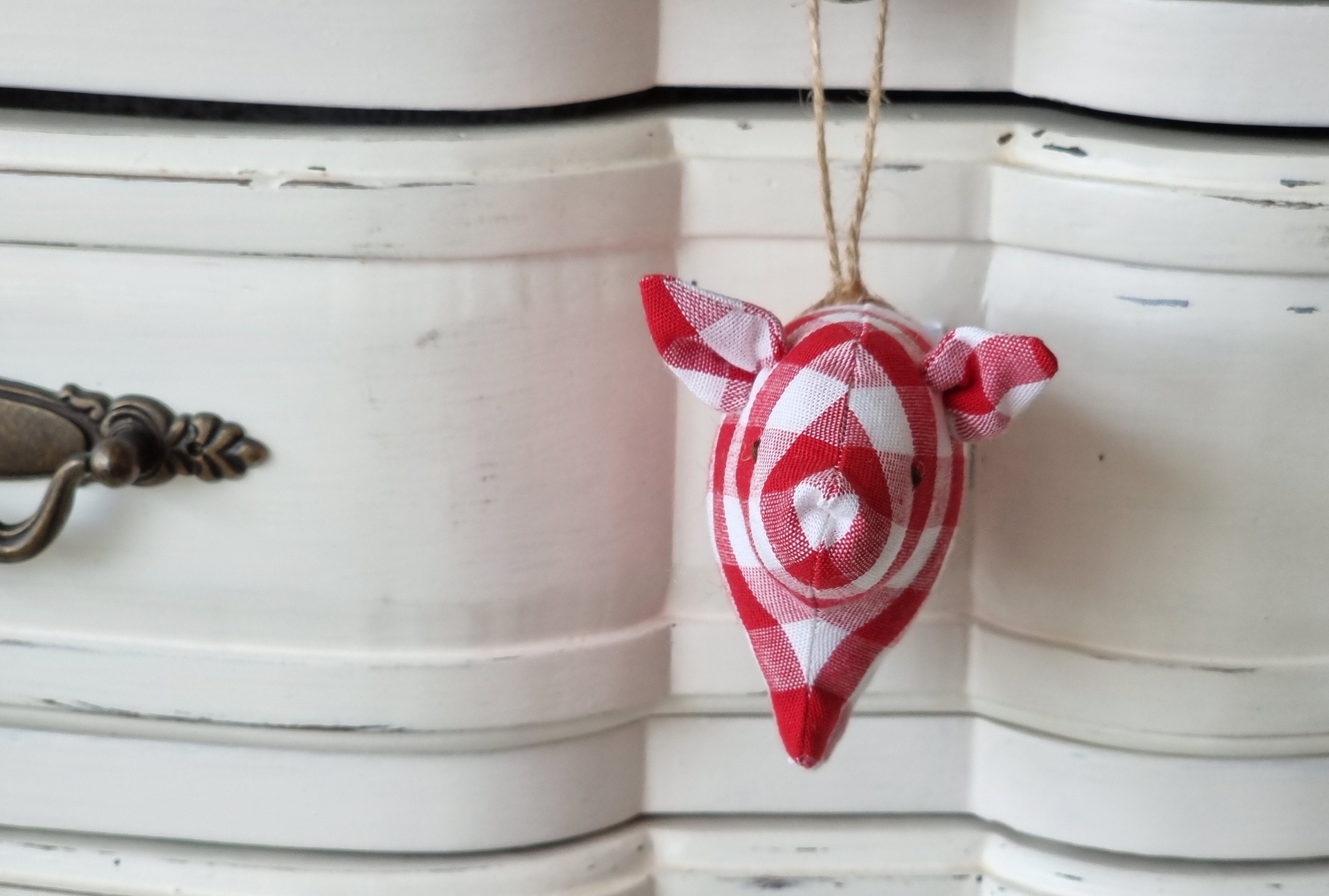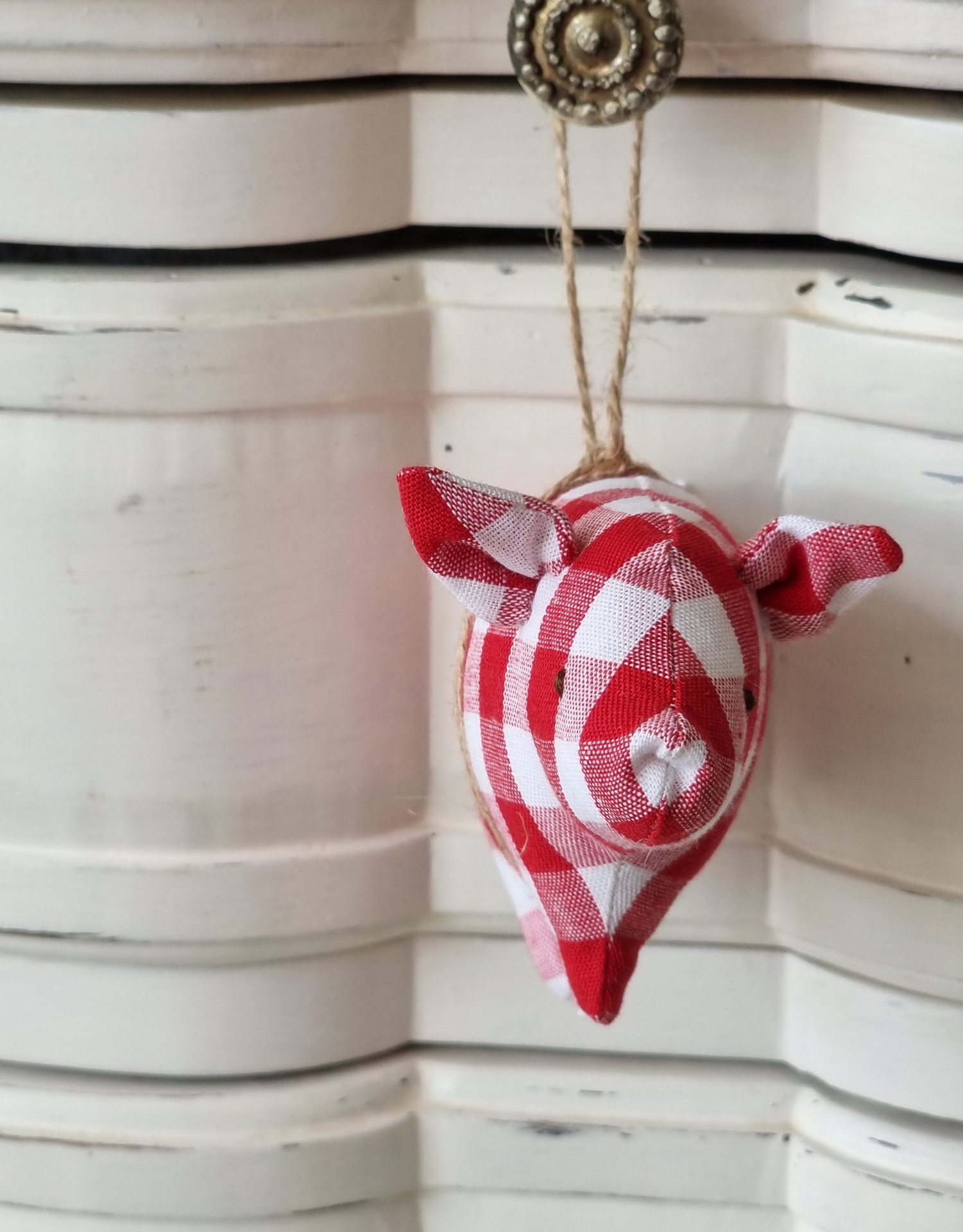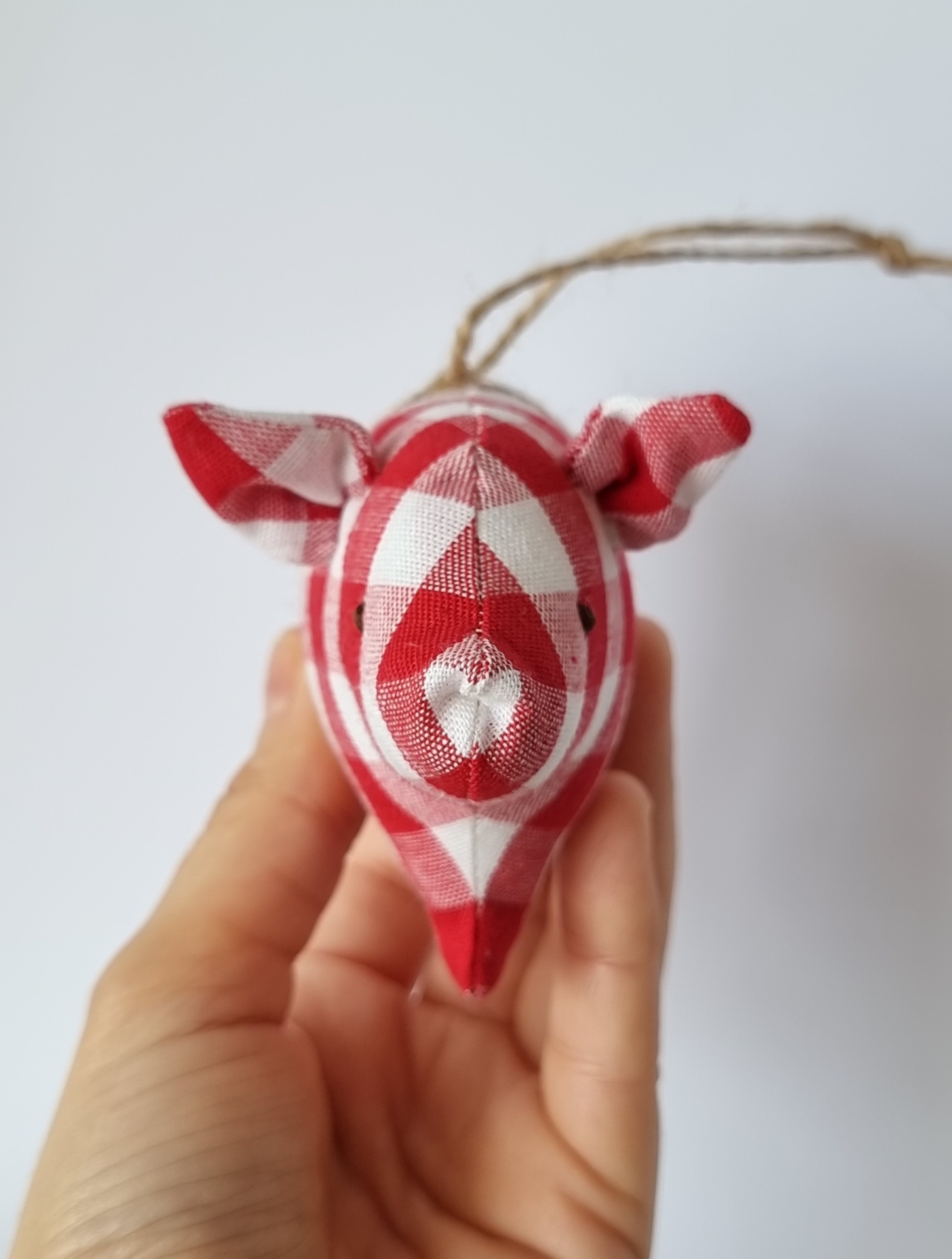 This little pig can be hung to decorate the living room, bedroom or even the Christmas tree. If you prefer, you can remove the thread and have a rag doll to play with.